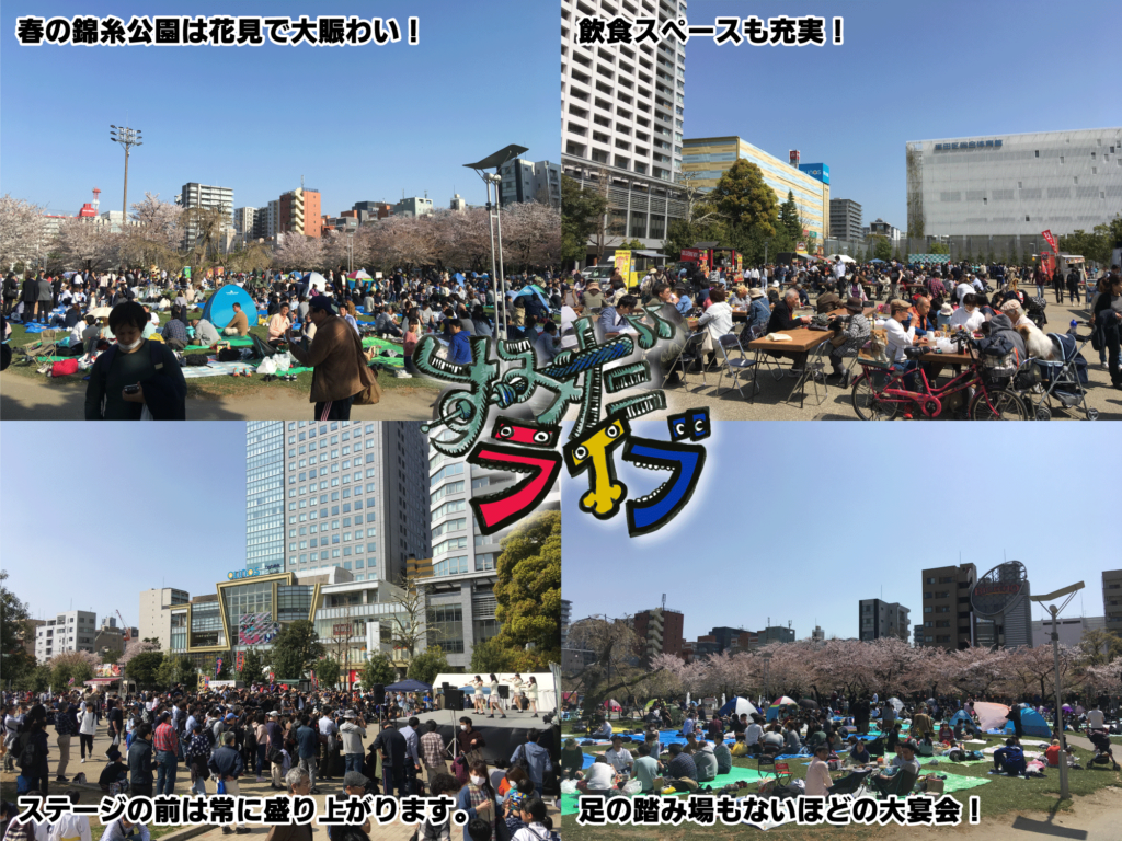 このすみだライブフェス「春」は、錦糸町の風物詩「錦糸公園さくらまつり」と同時期に開催されます。